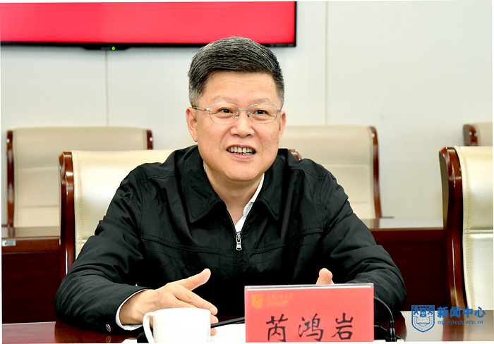 芮鸿岩书记对何涛部长一行的到来表示热烈欢迎,并用“个”“十”“百”“千”“万”形象生动地介绍了学校的历史沿革、办学特色、标志成果和发展愿景。希望双方未来进一步加强学生就业、博士后联合培养、青年人才汇聚、科技项目孵化等方面的合作交流。