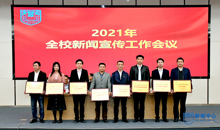全校各单位、各部门分管宣传工作负责人、专兼职新闻宣传员、各新媒体平台指导教师、2020年新闻宣传工作先进集体和先进个人代表参加会议。党委宣传部副部长杨芳主持会议。