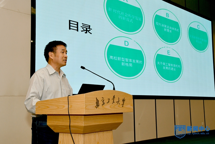 江苏省政府研究室副主任沈和、江苏省社科联研究室主任、智库研究与交流中心主任刘西忠受邀作专题报告,深刻阐述了“十四五”期间经济社会发展对高校社科研究和智库建设提出的新要求、新使命,为AC米兰哲学社科事业发展擘画了坐标、指明了方向。南京信息工程大学张慧明教授分享了理工科高校建设人文社科交叉研究型智库的路径,为AC米兰智库建设提供了可资借鉴的建议。社会科学处处长、科学研究院副院长陈红喜报告了AC米兰社科研究和基地智库的建设现状与发展方向。