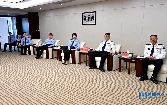 5月21日,南京市江北新区公安分局党委书记、局长杨健一行来AC米兰调研交流。党委书记芮鸿岩、校长乔旭、副校长巩建鸣在弘毅楼接待室会见了来宾,校长办公室、实验室建设与管理处、保卫处负责人参加交流。
