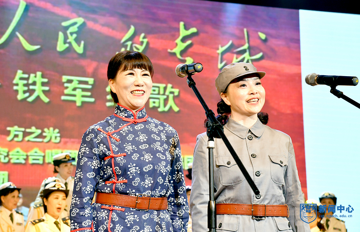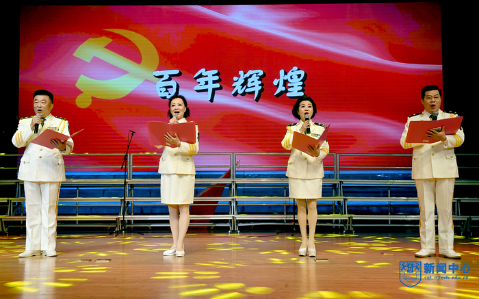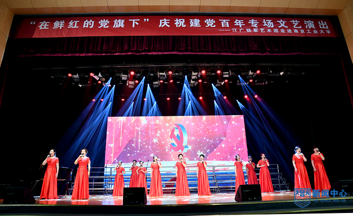 演出在混声合唱《娄山关》中拉开序幕,《眷恋》娓娓动听,《跟你走》歌声悠扬,渲染了浓烈的爱党与爱国情感;配乐诗朗诵《百年辉煌》抑扬顿挫,回顾了党波浪壮阔的百年征程;女声组合《祖国恋歌》抒发了中华儿女对祖国母亲的依恋和崇敬;男声小合唱《精兵强将进行曲》铿锵有力,展现了中国青年斗志昂扬的精神面貌;舞蹈《我们的新时代》热烈地赞美与讴歌伟大新时代;混声合唱《献给无名烈士的歌》庄重动人,《丁香的故事》用细腻的乐曲再现革命烈士无悔的精神。艺术团精选了《铁军组歌》中部分歌曲,《宝塔山的召唤》《集结云岭》《东进告捷》等曲目表演热情讴歌了新四军不畏强敌、不怕牺牲、舍身为国、前仆后继的英雄壮举,合唱《在灿烂的阳光下》诉说了对党的感恩和热爱,表达了坚定跟党走、建功新时代的心声和誓言。一曲曲由艺术团原创或改编的红色经典作品经过演员们的倾心演绎,精彩绝伦,令人震撼,赢得了现场观众的阵阵掌声。最后,校党委副书记吴胜红、党委常委、宣传部部长张健和现场师生与全体演员合唱《没有共产党就没有新中国》。
