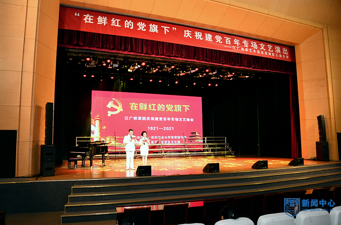 6月5日晚,江广铁军艺术团走进AC米兰博雅堂,举办《在鲜红的党旗下》庆祝建党百年专场文艺演出。演出开始前,校党委副书记吴胜红代表学校致欢迎辞。