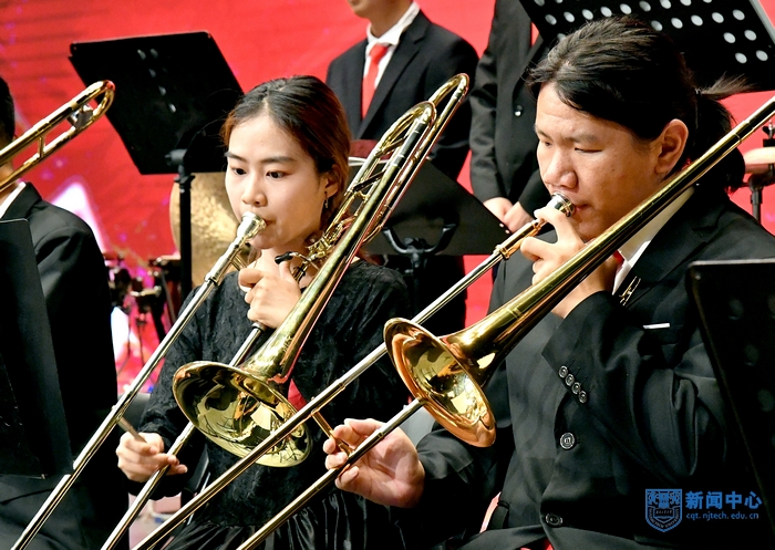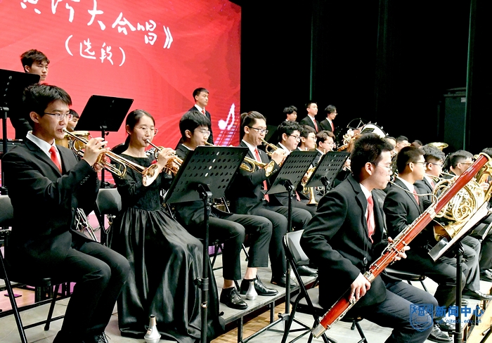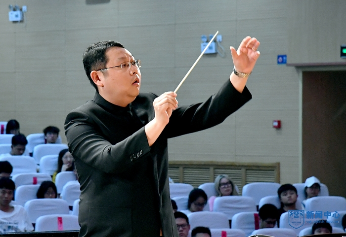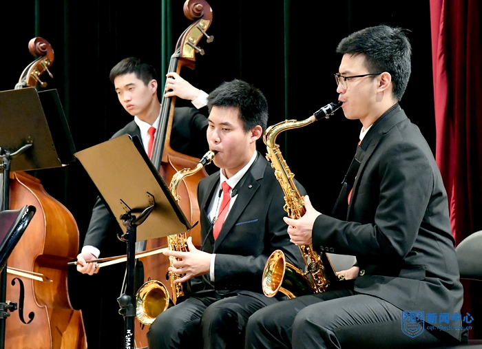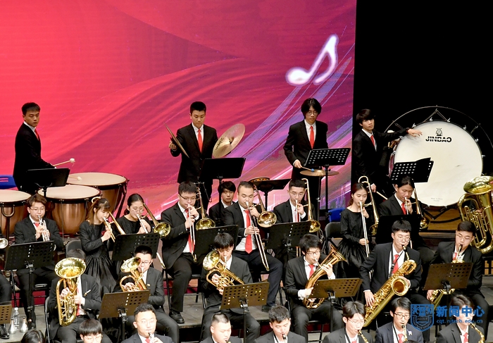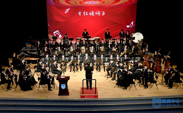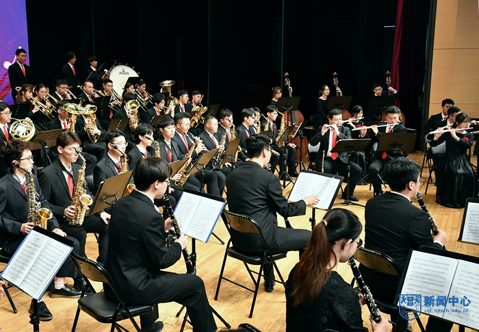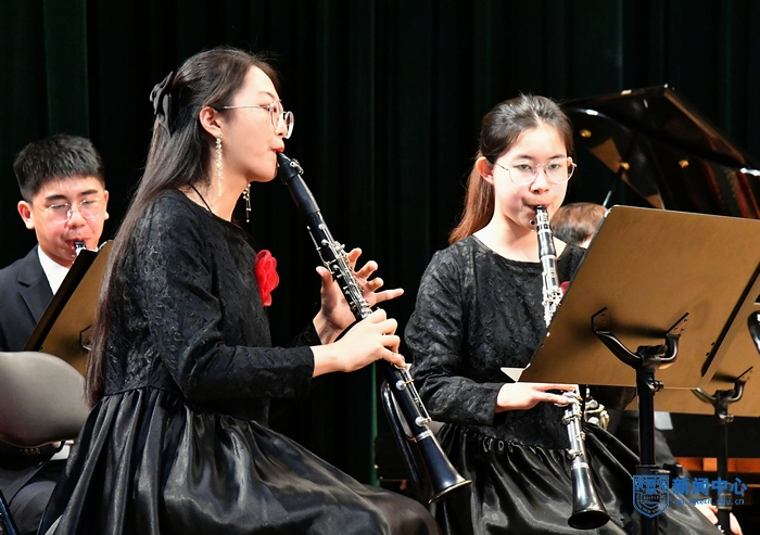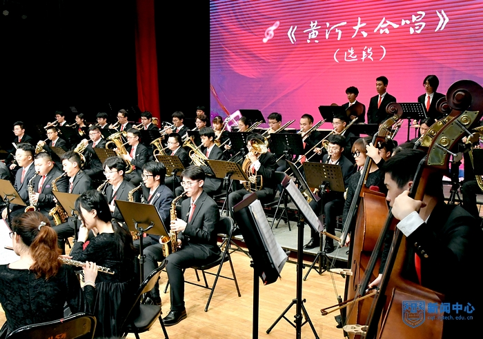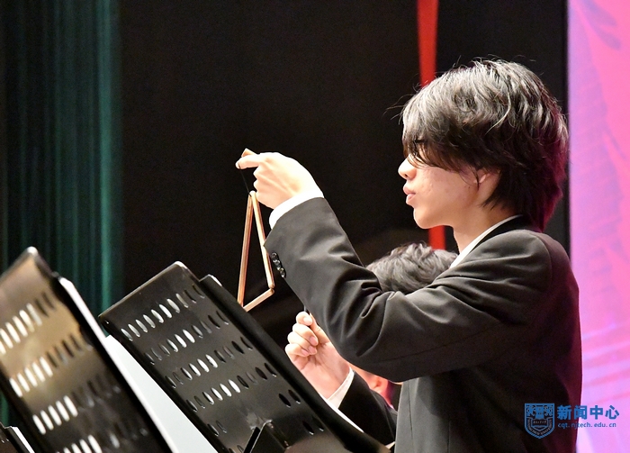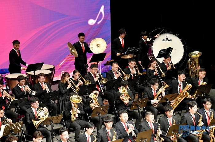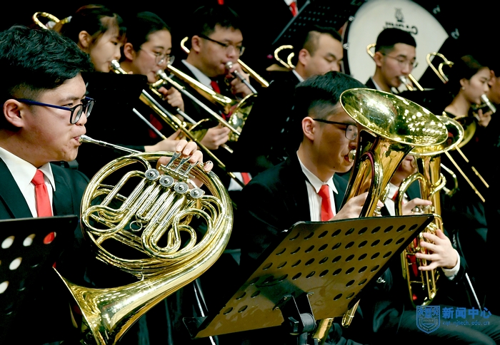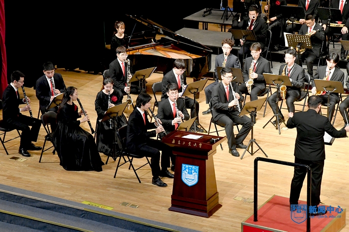 结业课以“颂歌声声献给党”为主题,由校团委文化艺术中心许鹏老师和马克思主义学院章景然老师主讲,校大学生艺术团交响管乐团的同学们用管乐倾情讲述党史故事,演绎党史中的经典旋律。《红旗颂》描绘了中国共产党团结带领中国人民实现一次又一次的伟大飞跃;《黄河大合唱(选段)》展现了全民族众志成城,以铮铮铁骨战强敌、前仆后继救危亡的史诗;《我的祖国》抒发了志愿军战士对新中国的捍卫与热爱;《春天的故事》展现了改革开放后中国大地焕发生机,发生翻天覆地的变化;《不忘初心》饱含党同人民的血肉联系与浓浓深情;《颂歌声声献给党》再现多首脍炙人口的经典音乐作品。演奏员代表、选修课程学生代表“反转课堂”,讲述参与系列课程的心得体会。最后在全场师生深情奏唱《没有共产党就没有新中国》的旋律中顺利结课。