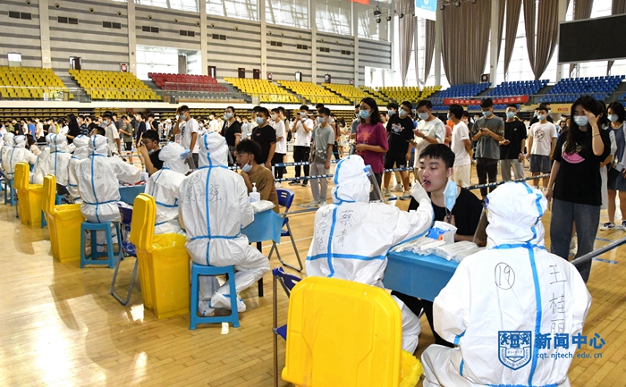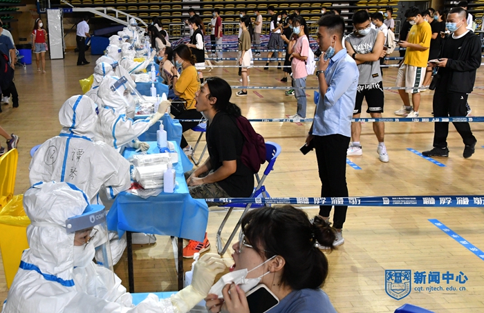 为进一步筑牢校园疫情防控安全防线,切实保障校园安全稳定,确保秋季开学工作稳步推进。9月27日,学校按照“高效、有序,规范、安全”的工作要求,在丁家桥校区和江浦校区,组织开展了返校学生核酸检测工作,共计19656名返校学生完成核酸检测。