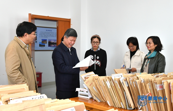11月12日上午,校党委书记芮鸿岩到档案馆调研并指导工作。芮书记听取档案馆馆长刘俊英等的工作汇报,实地察看了档案库房、设施设备,并深入各业务科室,与大家亲切交流,全面了解学校档案馆藏、档案管理和利用、安全、信息化建设以及筹建校史馆等重点工作推进情况。