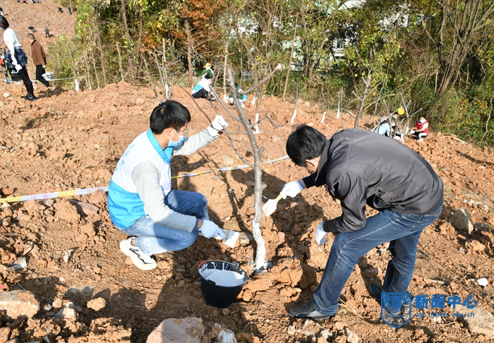 为增强党员的服务意识,以实际行动发挥共产党员的模范带头作用,践行“两在两同”建新功,11月19日,校部机关党委和后勤党委共同开展了“两在两同办实事 师生共建桃李园”主题党日活动。校部机关党委、后勤党委以及学生代表共计150余名党员,将亚青村桃李园移栽至厚德楼南侧建设新桃李园,并对桃树进行刷白预防病虫害。校党委书记芮鸿岩,校长乔旭,校党委常委、副校长牛生杰参加活动。
