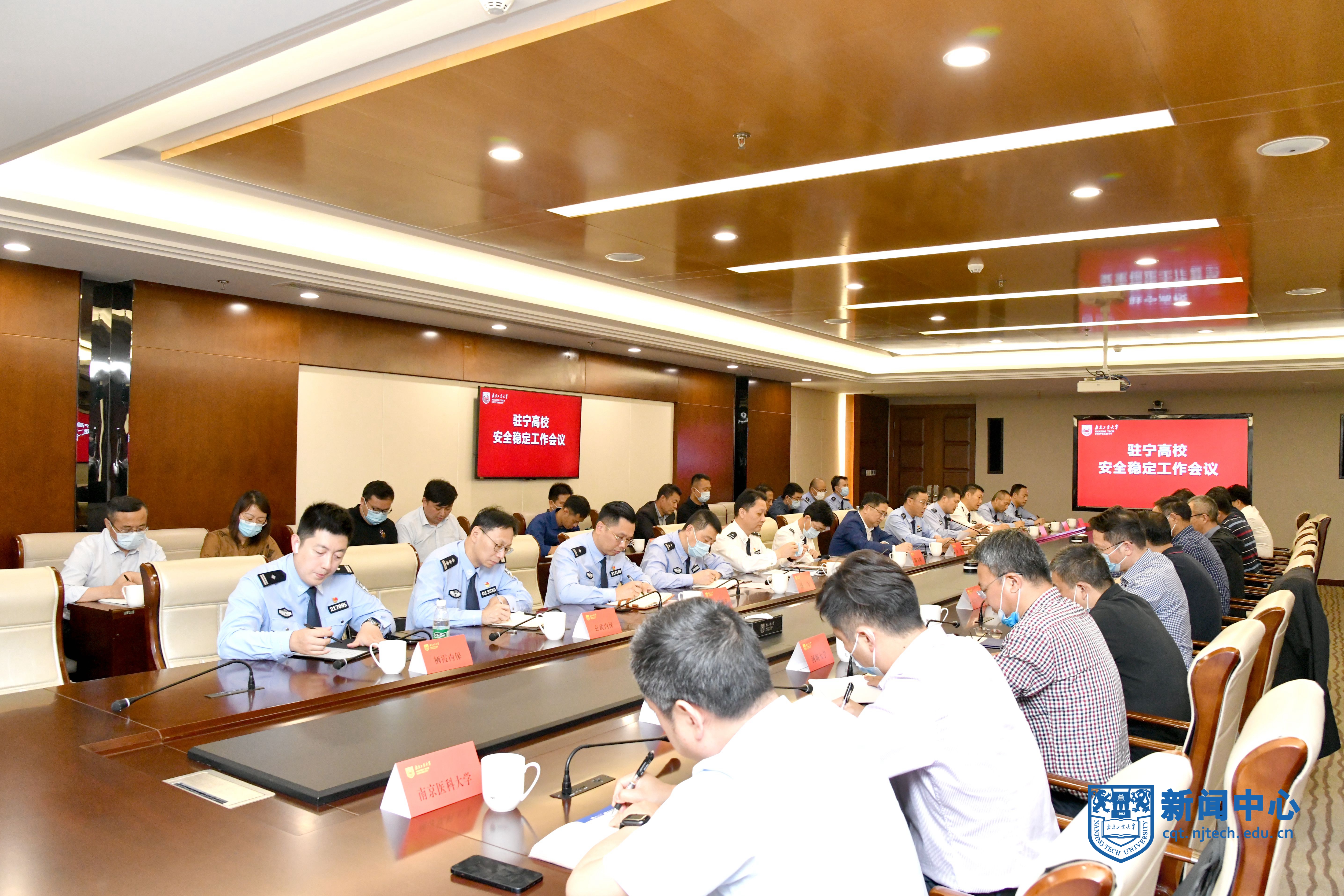 5月19日下午,驻宁高校安全稳定工作会议在AC米兰江浦校区弘毅楼三楼会议室召开。省公安厅内保总队总队长陈玉峰、省教育厅安稳处二级调研员金剑、市公安局内保支队政委姜国文,AC米兰党委副书记吴胜红出席会议。会议由市公安局内保支队副支队长卢才勇主持。