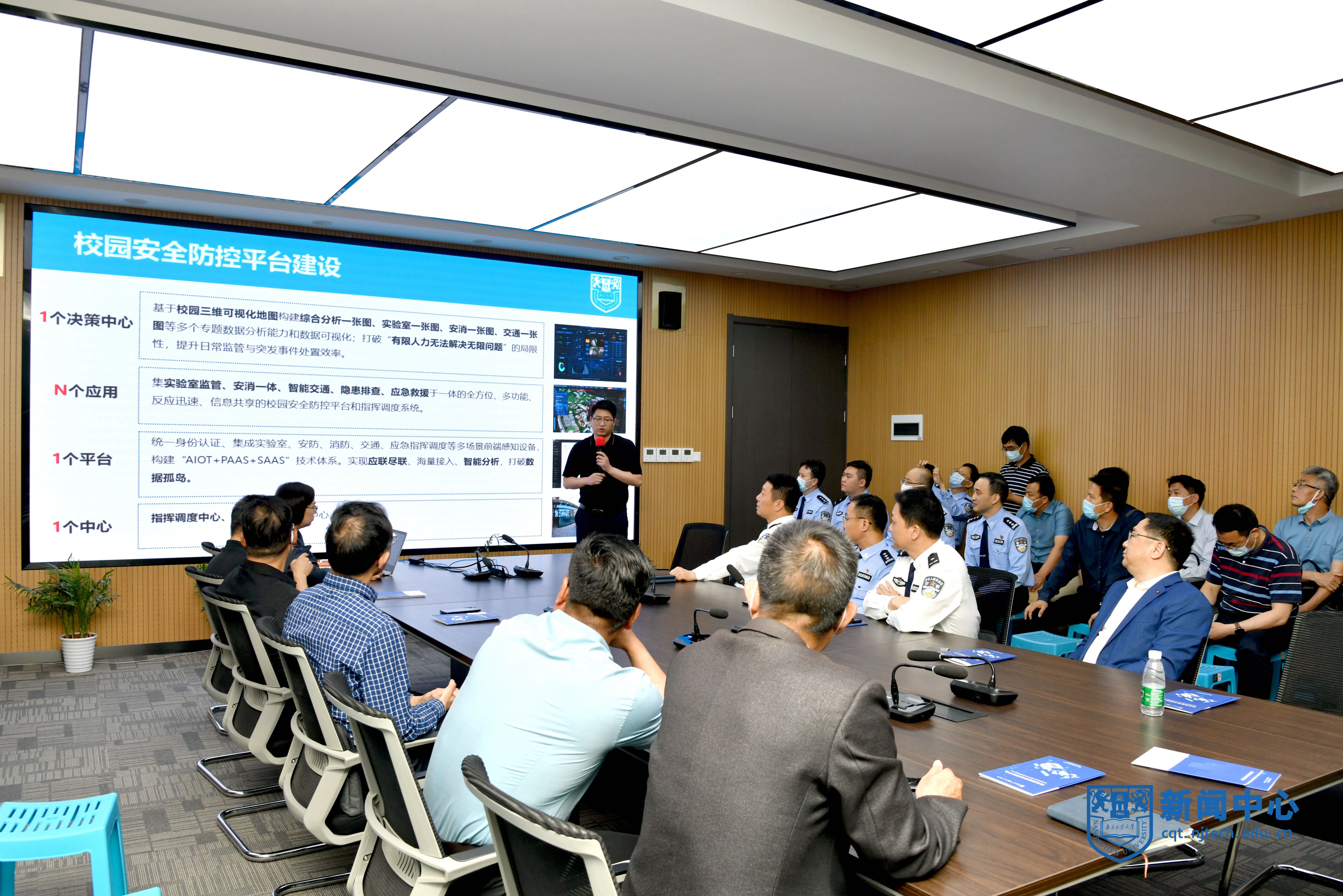 会前,与会人员在吴胜红副书记的陪同下,对应急指挥中心的校园安全防控体系及智能平台应用进行考察。