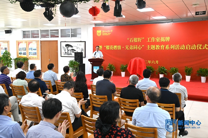 6月7日下午,“石榴籽”工作室揭牌暨“榴花燃情·兄弟同心”主题教育系列活动启动仪式在亚青食堂三楼同心家园举行。校党委副书记崔益虎,省委教育工委统群处处长朱大梅出席仪式,仪式由党委常委、统战部部长刘大卫主持。