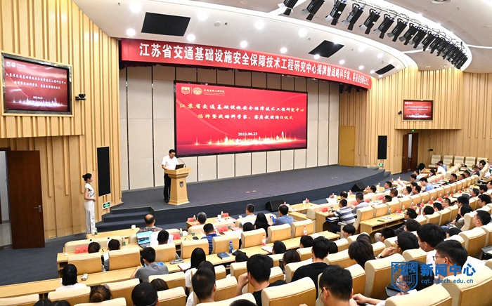 6月23日下午,江苏省交通基础设施安全保障技术工程研究中心(以下简称“省工程中心”)揭牌暨战略科学家、客座教授聘任仪式在国家重点实验室五楼报告厅举行。中科院冻土工程国家重点实验室马巍教授、东南大学刘松玉教授、南京水利科学研究员蔡正银教授以及友好合作单位的领导,校长乔旭、副校长李世收出席仪式。仪式由交通运输工程学院院长周峰主持。