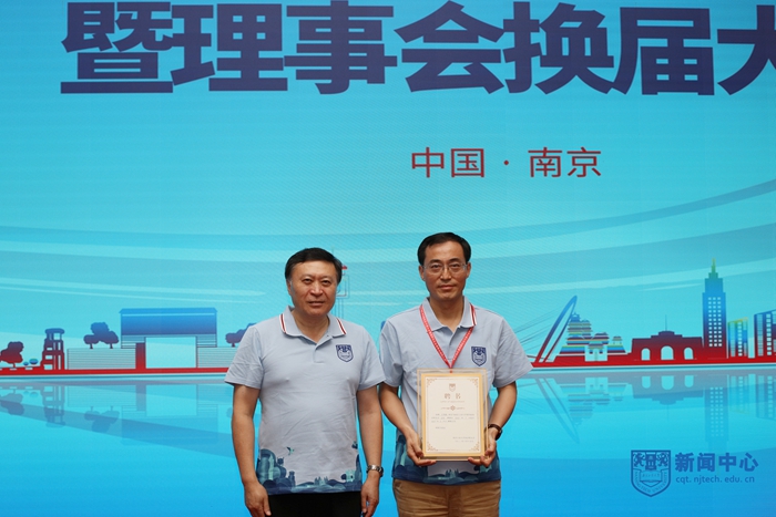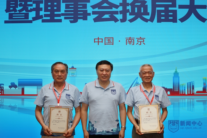 在与会代表热烈的掌声中,乔旭校长为第四届理事会荣誉会长张大本校友、贾德裕校友颁发聘书,为第四届理事会会长王雪根校友颁发聘书。乔旭校长还代表学校向王雪根会长递交了2022届在南京地区就业的新校友名册。