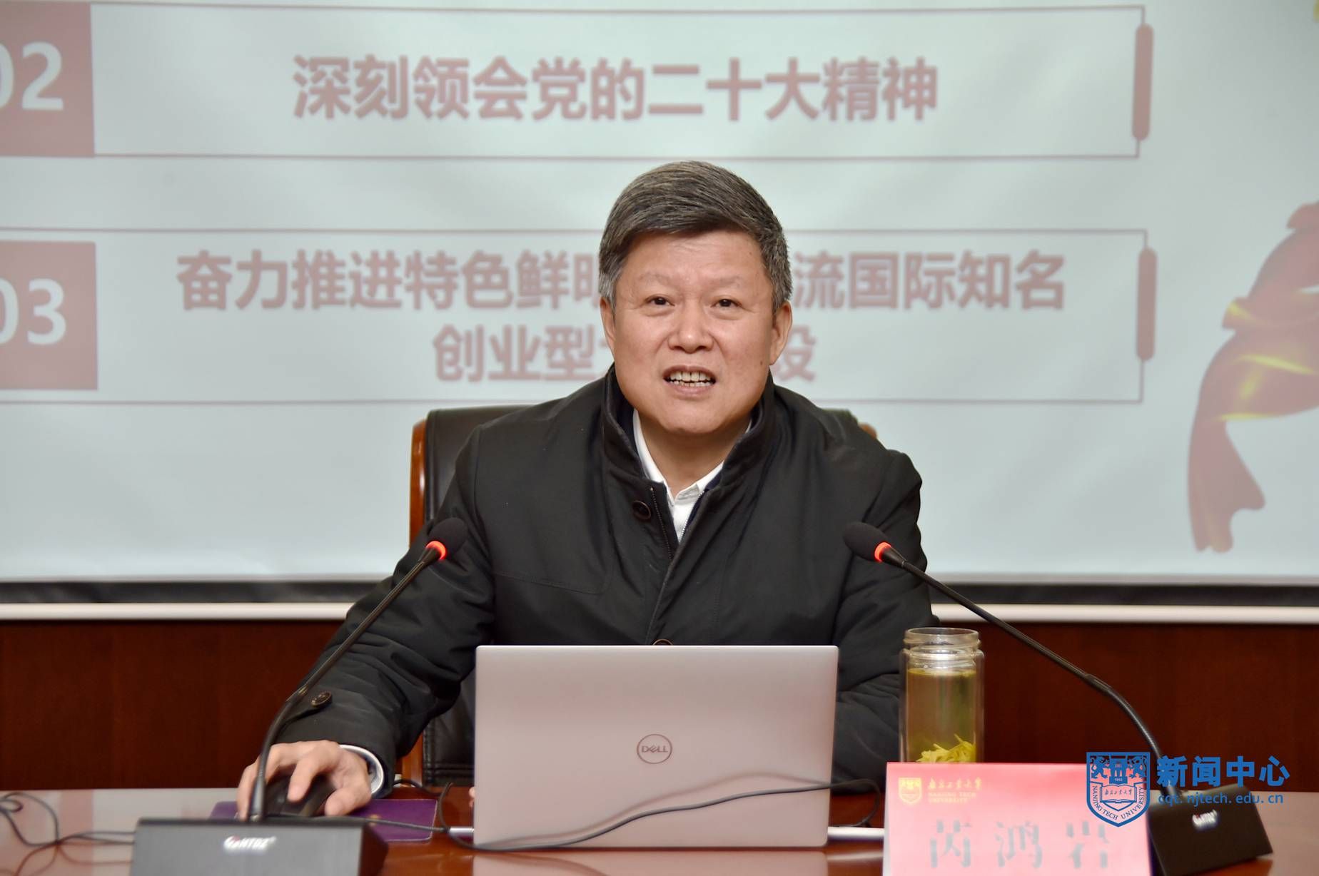 芮书记强调,要充分认识学习宣传贯彻党的二十大精神的重大意义,深刻领会党的二十大精神的丰富内涵和精神实质,在全面学习、全面把握、全面落实上下功夫。芮书记指出,要锚定校第五次党代会提出的建设特色鲜明国内一流国际知名创业型大学的战略目标,全面加强党的建设,奋力推动高质量发展。芮书记要求,材料学院要立足办学70周年新起点,深化专业课程改革,扎实推进专业建设,坚持基础研究与应用研究并进联动,团结奋斗,弘扬砼心精神,创造新的辉煌。芮书记结合对学校创业精神、时钧精神的解读,用生动典型勉励青年学子志存高远,涵养家国情怀;艰苦奋斗,锤炼品德修为;练就本领,投身强国伟业。