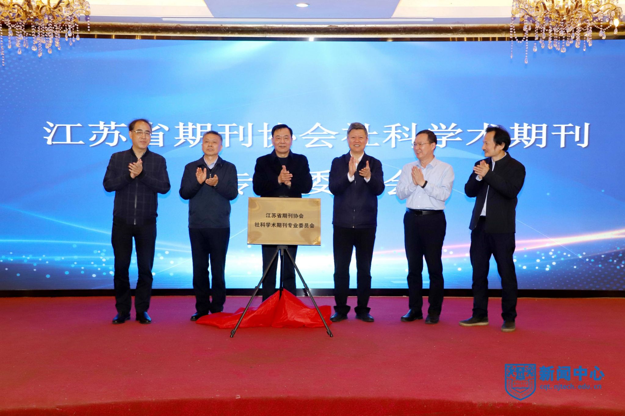 王文军主任介绍了江苏省期刊协会社科学术期刊专业委员会的会员单位、常委会成员以及成立背景、成立目的、主要任务等。芮鸿岩书记、马万佐主任、沈建国会长、刘曙光理事长、王文军主任、王浩斌理事长共同为“江苏省期刊协会社科学术期刊专业委员会”揭牌。