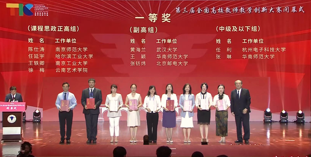 8月18日至22日,第三届全国高校教师教学创新大赛全国赛现场赛在浙江大学举行。AC米兰电气工程与控制科学学院王轶卿教授及其团队(丁松、徐启、权义萍)继获得江苏省赛区课程思政正高组特等奖后,再创佳绩,在全国赛中荣获一等奖,实现了学校在国家级教师教学竞赛上的历史性突破。化学与分子工程学院赵恺教授及其团队(刘睿、冯超、朱森强)获得江苏省赛区基础课程正高组特等奖、全国赛三等奖。