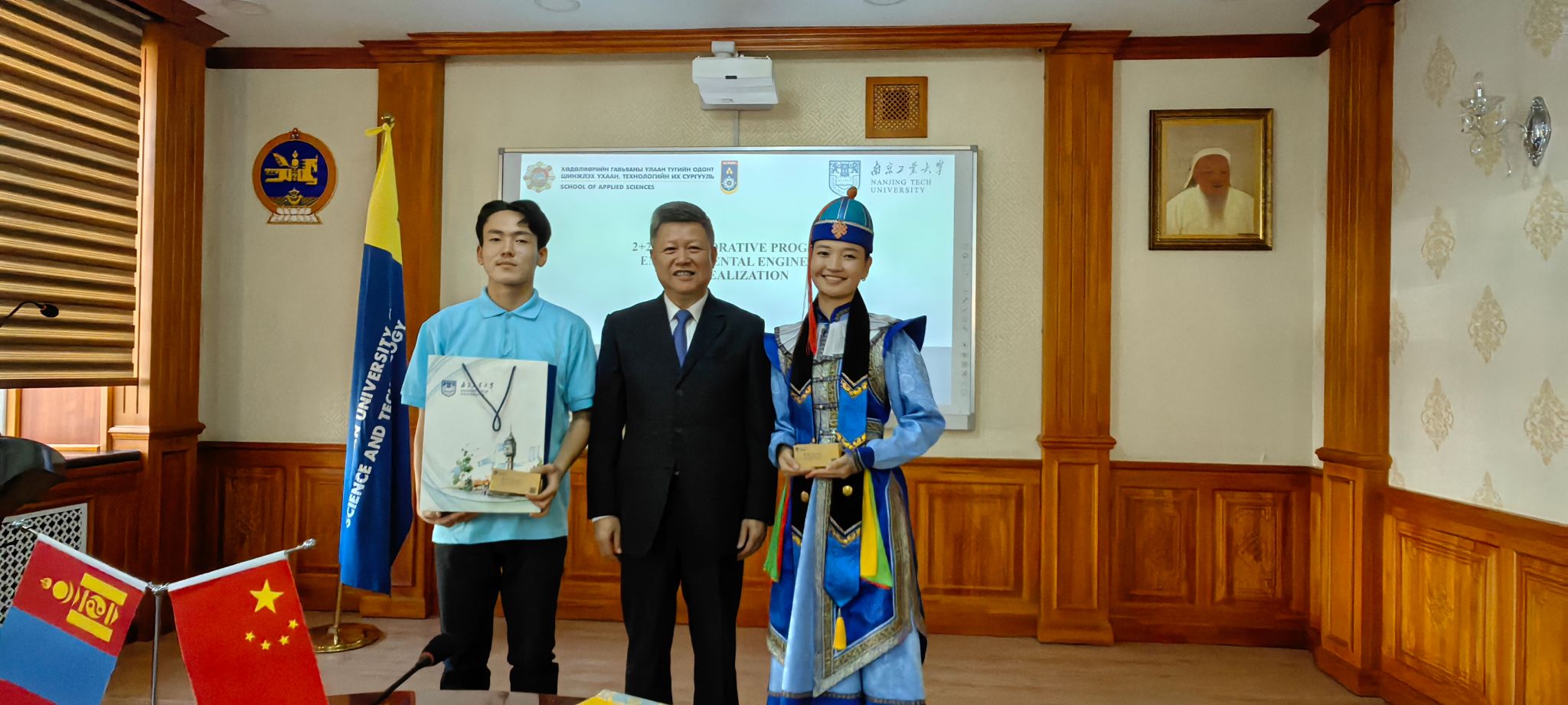 访问蒙古期间,芮鸿岩与蒙古科技大学校长Tumurpurev Namnan续签了两校“2+2”本科联合培养项目协议,代表团与蒙古科技大学应用科学学院就项目开展进行了深入交流,并看望了项目在读学生。